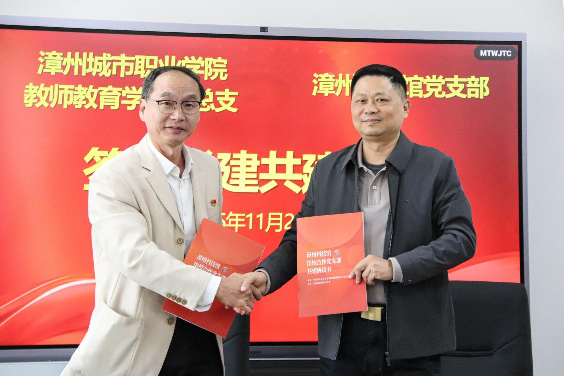 为深入贯彻落实习近平总书记关于科技和人才培养的重要论述,积极响应国家“科技强国”建设,探索党建工作与公共文化服务、科普教育深度融合,11月26日,教师教育学院党总支与漳州科技馆党支部举行党建共建仪式,签订我市首个馆校合作支部共建协议。此次签约是双方强化党建与业务融合的重要举措,也是构建“党建引领、优势互补、资源共享、合作共赢”新格局的起点。
