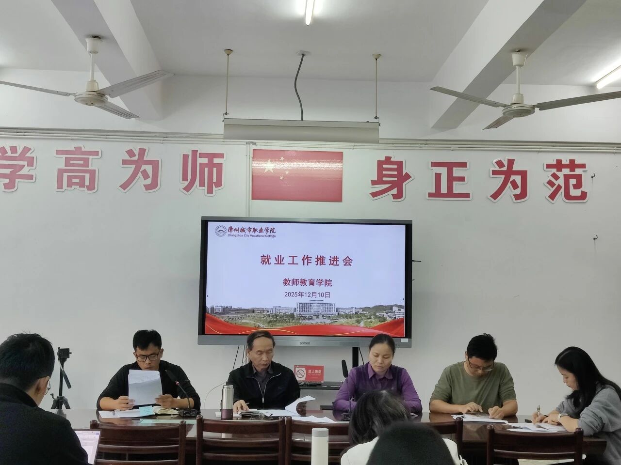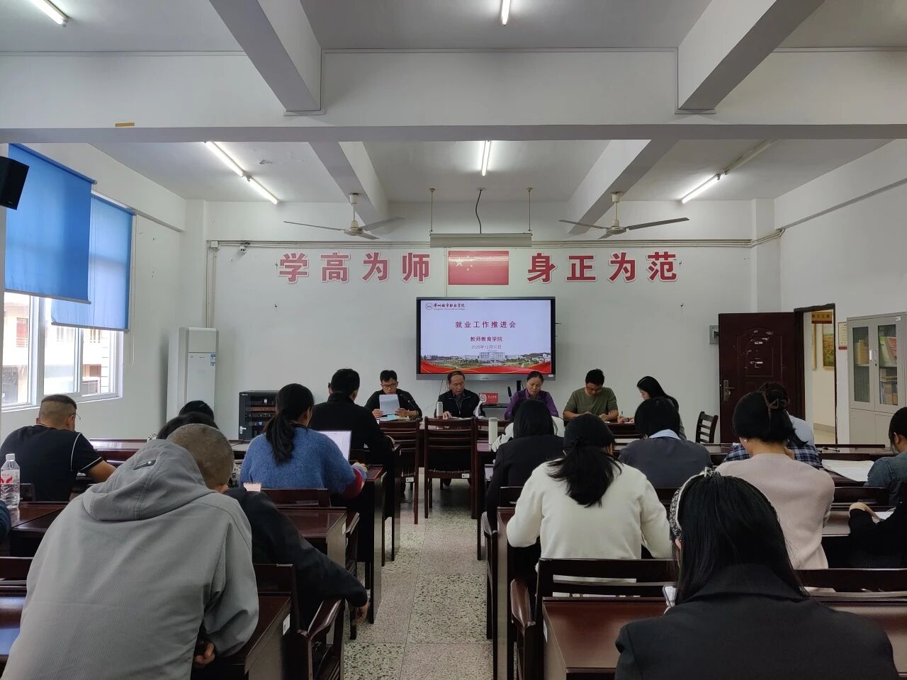为深入贯彻落实国家关于高校毕业生就业工作的决策部署,积极应对就业市场新形势,教师教育学院于12月10日召开就业工作推进会,会议研究持续、精准推进2025届毕业生就业服务的同时,正式全面启动2026届毕业生就业指导系列工作,学院领导班子成员、专业带头人、教研室主任、毕业班辅导员及全体就业指导老师参会。