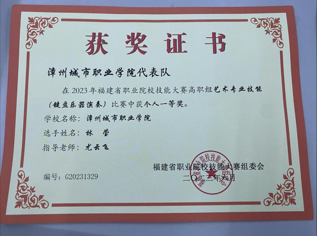 学生荣获2023年度福建省职业院校技能大赛个人一等奖