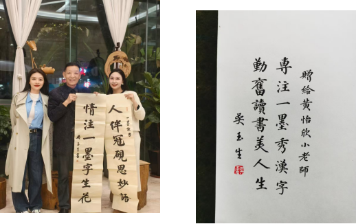著名书法家吴玉生为其题字“专注一墨秀汉字,勤奋读书美人生”,这既是对黄怡欣专注书法教育事业的高度赞誉,也是对一墨书斋办学理念的生动诠释。