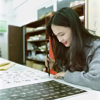 黄怡欣,2017级美术教育专业毕业生,在校期间对书法创作产生浓厚兴趣,她以笔为舟,以墨为帆,在书法教育领域书写了一段从兴趣萌芽到事业腾飞的动人篇章。