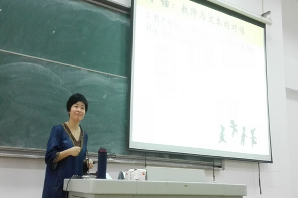范老师以2011年版的《义务教育语文课程标准》中“对话”的概念为切入点,引导即将到小学实习的师范生们如何与文本对话、与编者对话,并以师范生即将实习教学的人教版小学语文三年级下册教材为例,讲解如何结合学段特点、单元目标、文本特点、学生水平,重组教学内容,进行教学设计。范老师还以《太阳是大家的》《卖木雕的少年》两篇课文的教学设计为具体例子,讲解如何进行教学目标的设计,如何抓住文章中的重点句子,句子中又抓住重点词语,如何有的放矢地引导学生自读自悟,如何摒弃教学中繁琐的分析以取得较好的教学效果等。