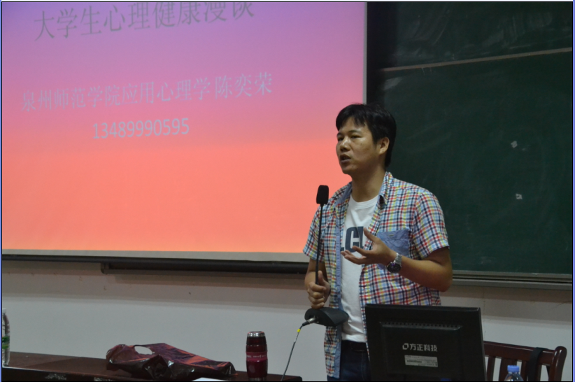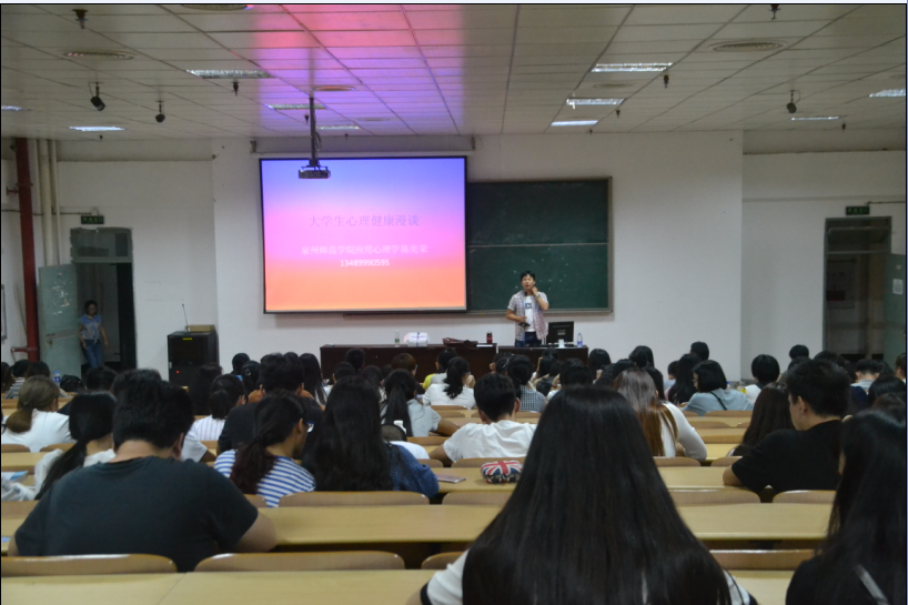 在教学楼梯教三为我院同学作了一场“大学生心理健康漫谈”的专题讲座。