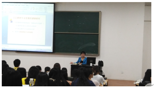 2017年5月2日晚我院教师教育系特邀漳州市东铺头中心小学教导主任、福建省级语文学科教学带头人、漳州市研究型名师余玉华老师为15级小学教育专业的学生做题为《立足教师专业发展的课例研究》的讲座。余老师解答为何教师需要谋求持续的专业发展,并分析当今教师需要的专业素养,为师范生明确培养自身专业素质的方向与途径,接着她以自己教授的精彩语文课例《花钟》为例,传授如何建构生本课堂,正在为专业实习做准备的师范生得到了宝贵的指导。