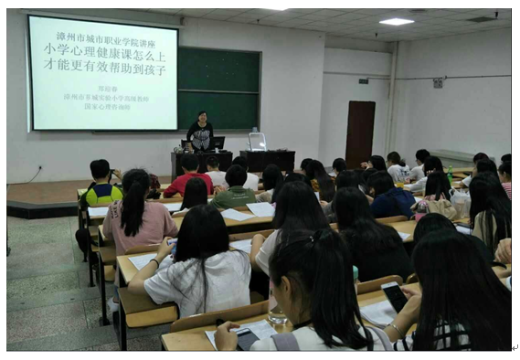 五月三日晚 ,我院教师教育系邀请漳州芗城实验小学高级教师、国家心理咨询师郑迎春老师为初教15级全体学生进行了一次“小学心理健康课怎么上,才能更有效帮助到孩子”为主题的讲座。