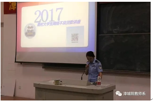 ,教师教育系特邀市公安局芗城分局县前派出所的许学芳警官在梯教四为同学们进行网络不良贷款的宣传和教育。此次讲座许学芳警官从网贷案例、网贷形式、网贷危害、网贷防范对策等方面对学生展开了多方面的教育。