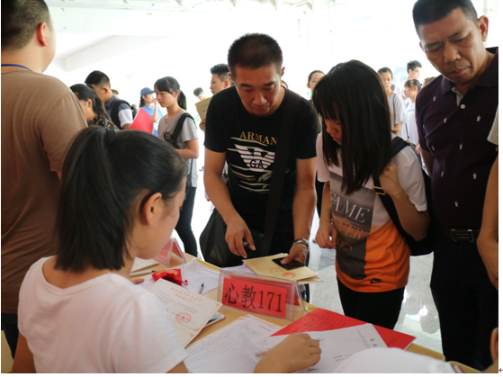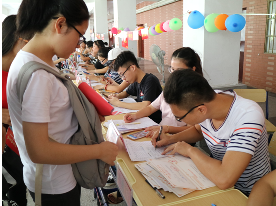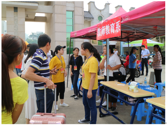 迎接新生的志愿者卢木生对小编说:"此时此刻,我的心情与新生们一样激动,因为两年前的今天我也是这样被师兄师姐们呵护着走进教师教育系的。虽然现在的我们在酷日下那么热,那么累,可是当我们听到新生和家长们一句"谢谢"的时候,就算再辛苦,我们也觉得值得。
