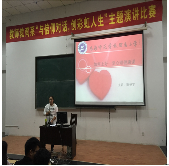 本次讲座陈老师紧扣“如何上好一堂心理健康课”的主题,以自身丰富的教学经验为切入点,为同学们阐述了心理健康课的定义及特点,注重让学生有所动、有所思、有所悟、有所得,坚持活动为主、重学生感受;分点为同学们剖析了如何设计好一堂心理健康课,通过视频、课例等多种形式,生动形象地分析了如何设计好心理健康课,让同学们更易接收,同时陈老师还告诫同学们要及时进行教学反思;最后在陈老师标准的京腔总结指导下,本次讲座落下圆满帷幕。
