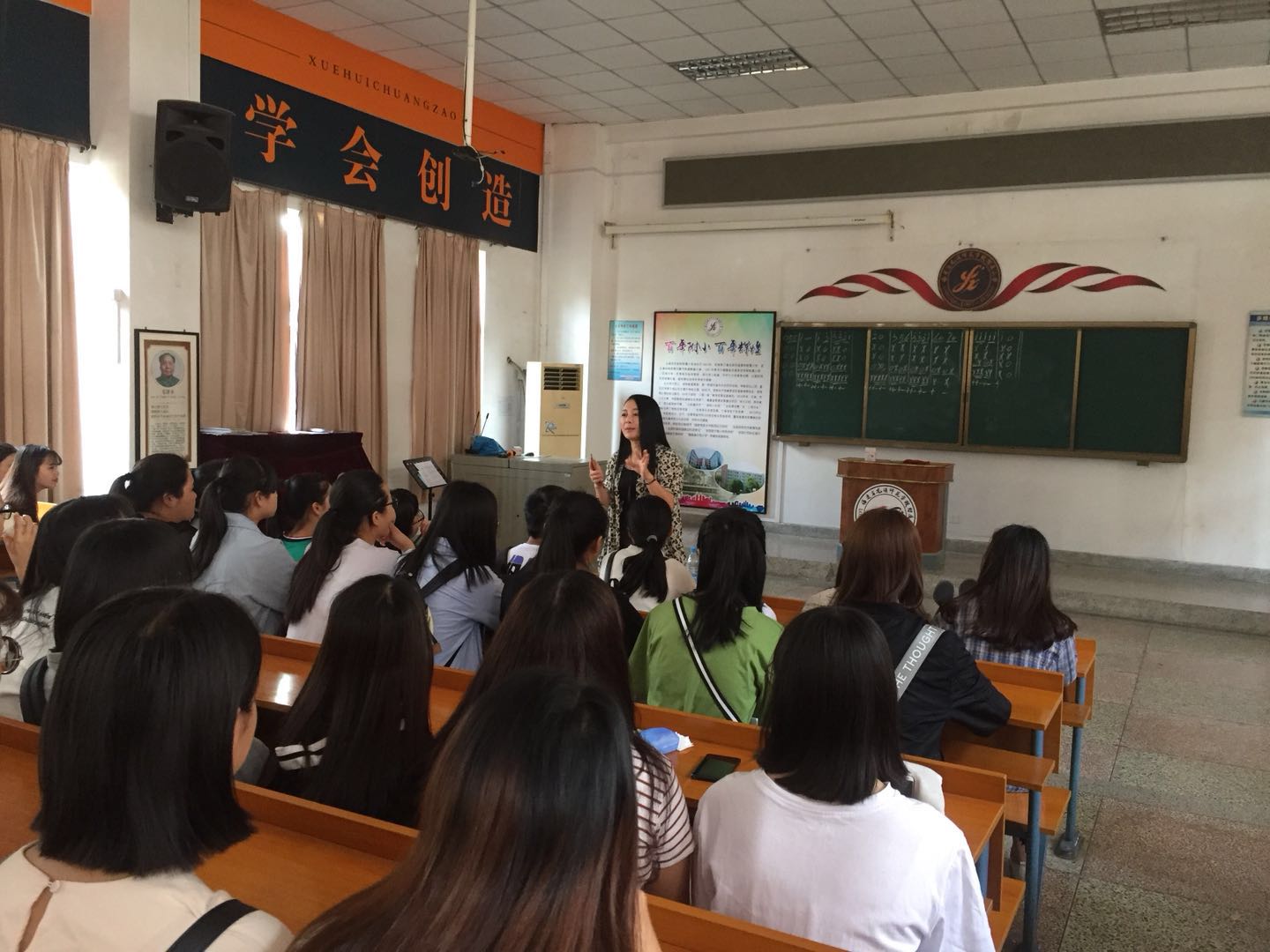 2018年5月10日,一个晴朗而清爽的早上,教师教育系2016、2017级小学教育、美术教育、英语教育、音乐教育的实习生们来到龙师附小美丽的校园。大家精神抖擞,带着对专业的热忱和对教育的执着期待跟岗实习和认识实习生活的开始。龙师附小教导处主任陈慧蓉老师给我们的实习生们做了实习前的讲话。一方面,强调要求我们实习生遵守实习校各项规章制度。尊重实习校内的领导,老师及所有员工;爱护学生;爱护校园。另一方面,陈教导点亮我们实习生的眼睛,让大家学会去观察学习龙师附小的“三套马车”。最后,对实习寄予美好的希望,希望这次实习将是双赢的,不但我们的实习生能够从中有所学习,实习校也能因实习生的到来,充满生机。