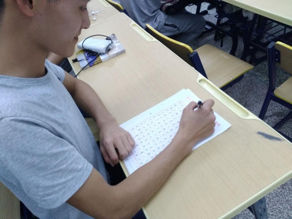 大赛进行时,同学们显得争分夺秒又不慌不忙,同学们经过长时间的精心准备,积极参与,气氛很宁静又显得很热烈。有的同学写楷书,有的同学写行楷,有的同学以行书为最后作品,各展所长,尤其是部分同学的积累十分深厚,在此次大赛大展了一番身手。
