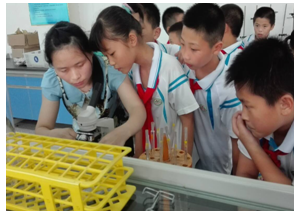 为扎实开展职业教育周活动,教师教育系于 5月 10日下午 ,组织邀请漳州市洋坪小学的小学生,到校开展“小学生科学探秘”活动。共计30名的小学生在我院讲解教师的带领下,参观西实验楼的“生理生化实验室”“有机化学实验室”“食品工艺室”等九个实训室。小学生们认真地聆听实验师的详细解说,观看昆虫标本,动手参与实验演示,实地感受了科学的奥妙和乐趣。