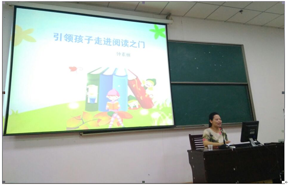 2017 年 5 月 4 日 晚上,通北中心小学党委副书记、小学语文高级教师钟素丽老师在梯教三为2015级小教专业全体同学举办了一场“引领孩子走进阅读之门”的专题讲座。钟老师结合她的教学经历与个人体验,从重视阅读引导的原因、开展阅读活动的做法、借鉴他人的成功经验、推动阅读的公平性等几个方面入手,进行了深入浅出的阐述,既结合实际案例,又有恰当的理论升华,集中展示了钟老师对阅读教学与课外阅读活动的长期关注与研究成果。钟老师的勤勉敬业、谆谆善诱更体现了浓厚的教师情怀,使同学们受到教育、得到启示。