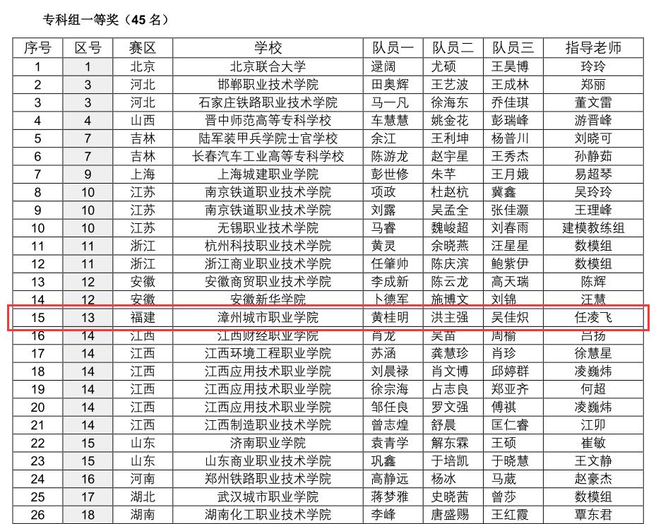近日,全国大学生数学建模大赛竞赛成绩揭晓,我系学生黄桂明,洪主强,吴佳炽荣获国家级一等奖,是福建省唯一一支获得国家级一等奖的队伍。全国大学生数学建模竞赛创办于1992年,每年一届,是首批列入“高校学科竞赛排行榜”的19项竞赛之一。今年有来自全国及美国和马来西亚的1490所院校/校区、42992队(本科39293队、专科3699队)、近13万人报名参赛,共有45支队伍获得了专科组国家级一等奖。