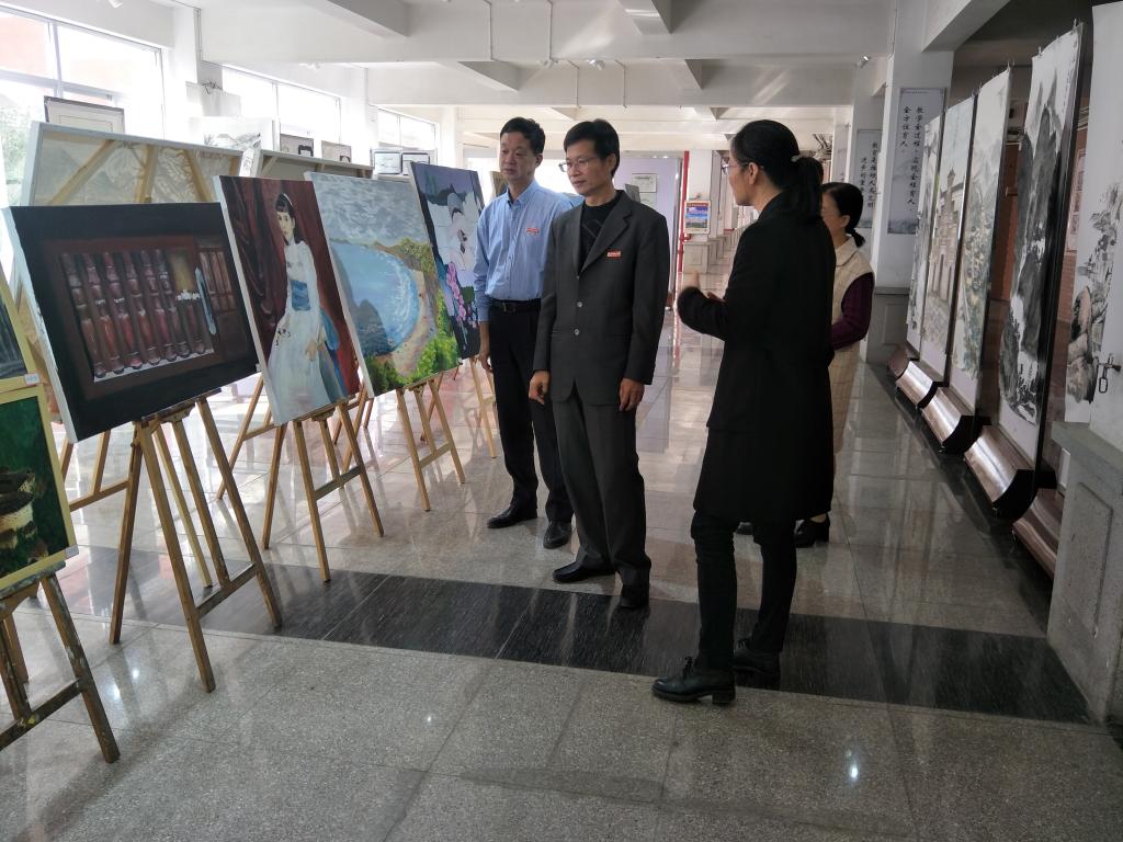 2019年12月26日上午,林良海副院长在我系党总支书记蔡文艺、系主任杨丽英等陪同下,在博学楼1楼参观我系17级美术教育专业学生的武夷山写生暨毕业创作作品展。