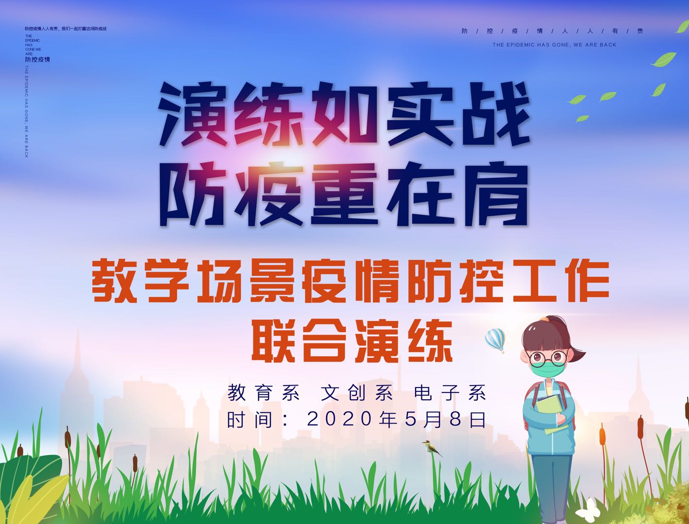 总指挥傅强向刘院长报告:教育系文创系电子系2020年春季开学复课教学场景防疫联合模拟演练已准备就绪,可以开始。院长刘惠河指示:按计划进行演练!穿戴整齐的工作人员、教师、学生扮演者,各就各位,如临其境。