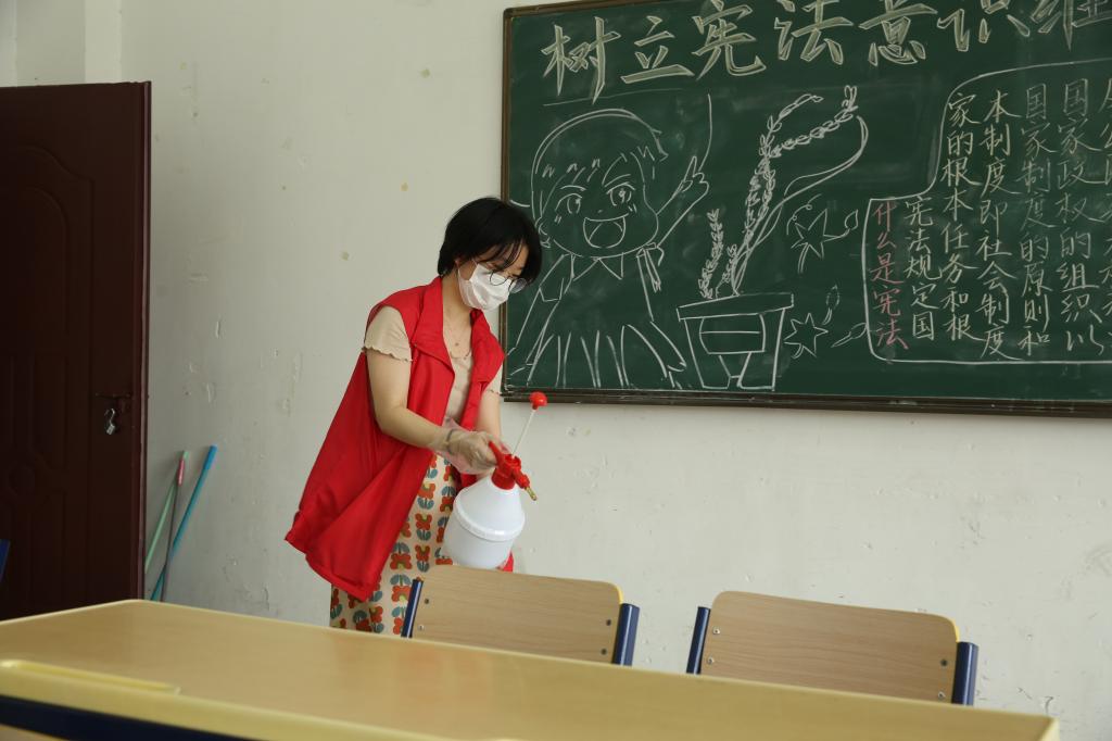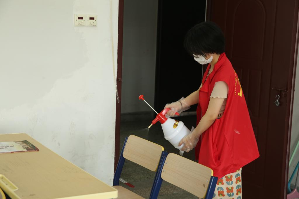 之后,专职消杀人员对教室进行消毒,并闭窗关门,做好每日记录。