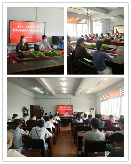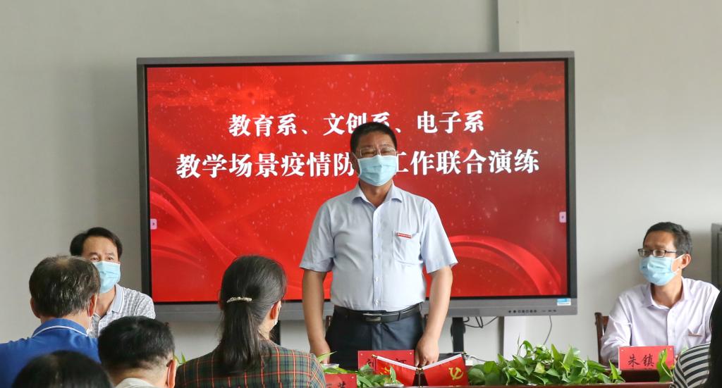 5月8日上午,为更好提高应对新冠肺炎疫情应急处置能力,确保2020年春季开学复课安全健康有序推进,教育系文创系电子系就教学环节联合开展防疫应急处置模拟演练。3个系党政班子成员、全体行政人员、辅导员、部分专业教师及校医吕医生参加了演练。学院院长刘惠河、党委副书记朱镇生、副院长郑文平莅临现场观摩指导。