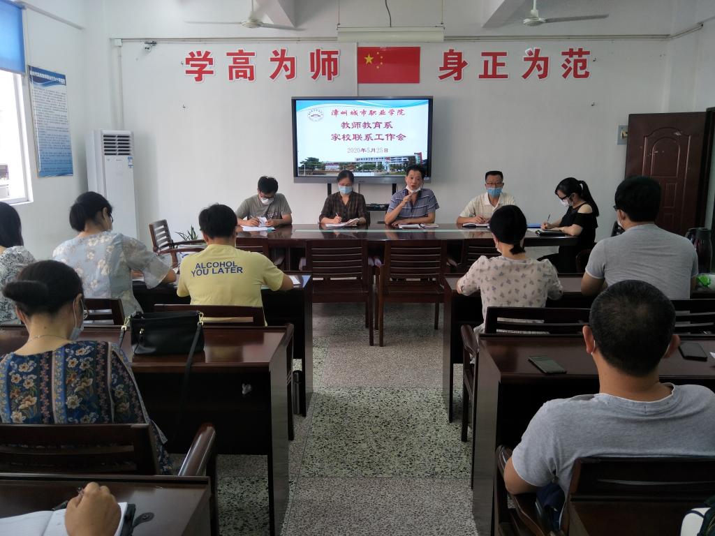 5月25日下午,漳州城市职业学院教师教育系在系会议室召开疫情防控背景下的家校联系工作会,部署疫情防控期间加强家校联系的工作及下一阶段的教学安排。会议由系党总支书记蔡文艺主持,系主任杨丽英、系副书记仲山民及全体班导师、班主任、辅导员参加了会议。
