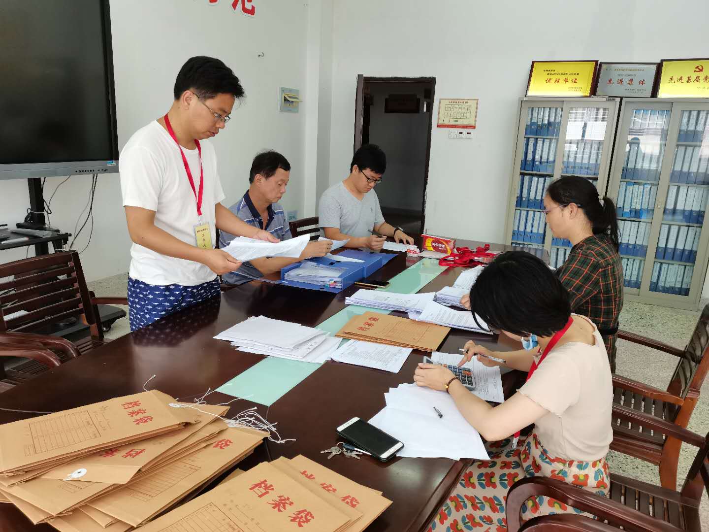 | 面试结束后系书记、系主任与工作人员一起整理面试材料 |