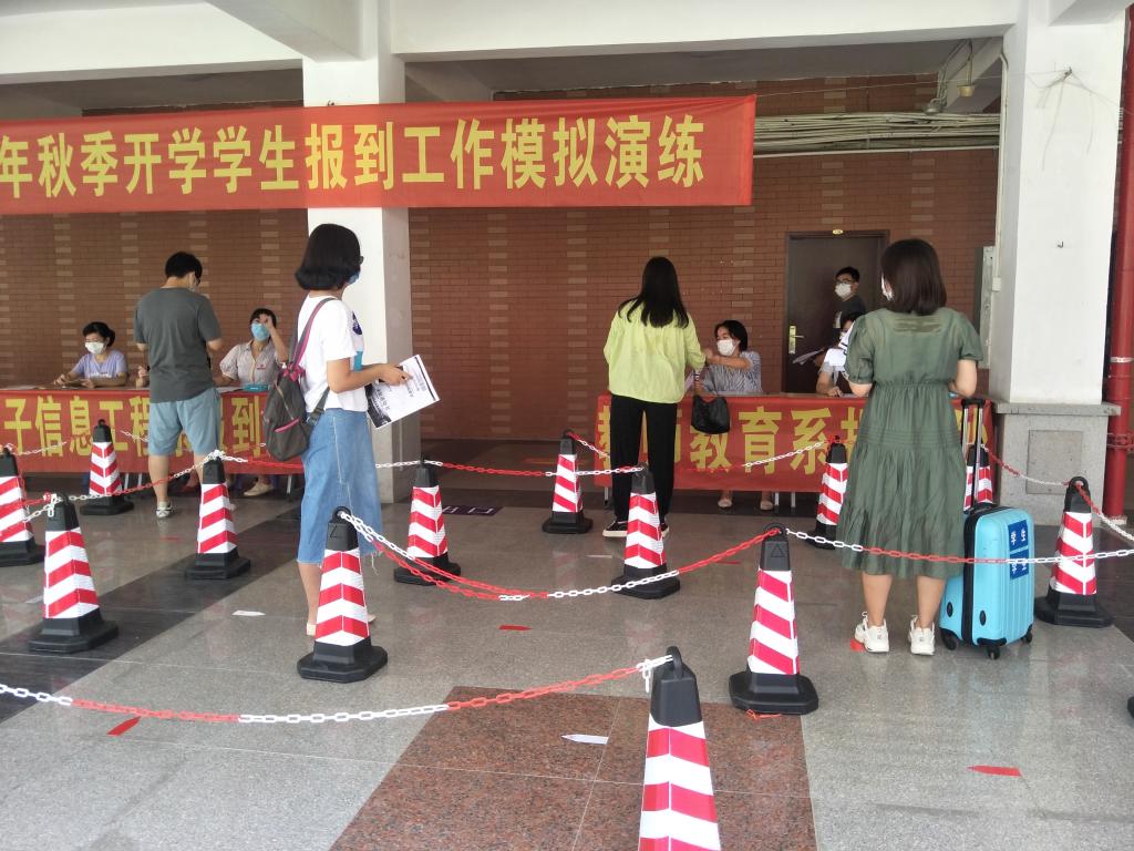 为确保2020年秋季开学学生报到工作的稳定有序开展,教育系、文创系、电子系于9月1日上午举行了2020年秋季开学学生报到工作模拟演练。3个系党政班子成员、行政人员、辅导员、班导师参加了联合演练。