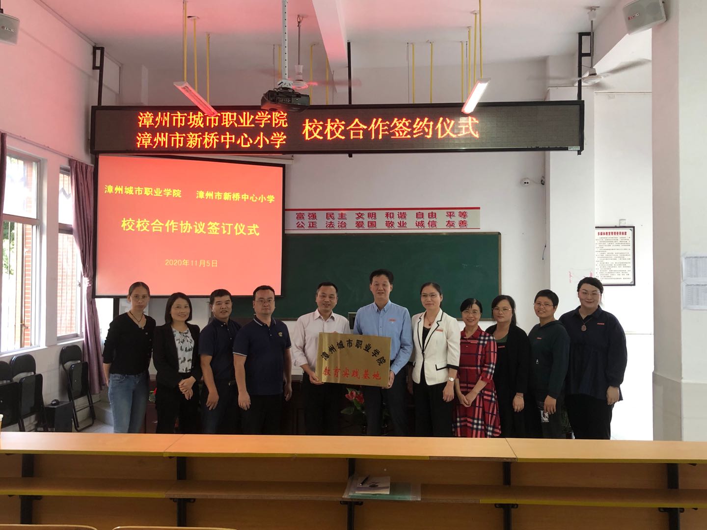 双方签署了校校合作协议,并隆重举行了“漳州城市职业学院教育实践基地”授牌仪式。