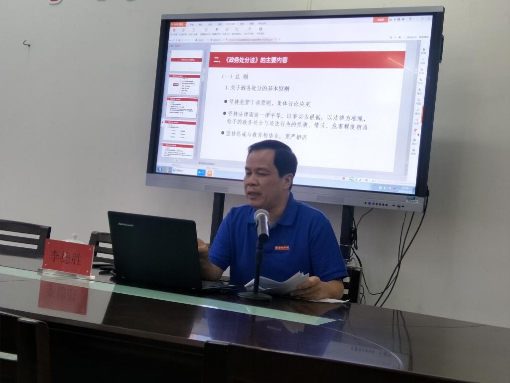 李书记围绕制定《公职人员政务处分法》的背景、意义及主要内容等方面,对《公职人员政务处分法》进行了深入浅出地解读,运用通俗易懂的语言,结合工作实际中的具体案例分析,详细阐述了《公职人员政务处分法》的种类、适用对象及规则等具体内容,并就如何深入理解《公职人员政务处分法》提出了具体意见。