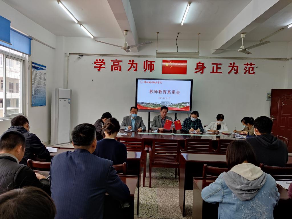 蔡书记就教师教育系新学期各项工作强调以下三点:一是要落实落细习近平总书记重要讲话重要指示批示精神,落实立德树人根本任务;二是开展好党史学习教育,牢牢把握“学史明理、学史增信、学史崇德、学史力行”的目标要求,学党史、悟思想、办实事、开新局;三要继续严格落实去年冬季以来有关校园疫情防控的工作部署和措施要求,始终绷紧疫情防控这根弦,决不将疫情隐患带入校园,做好开学准备工作。此外蔡书记对2021年省教育工作会议精神进行传达,盘点总结过去一年及“十三五”全省教育工作情况,要求全体教职工深刻认识和准确把握当前教育改革发展面临的新形势新任务。