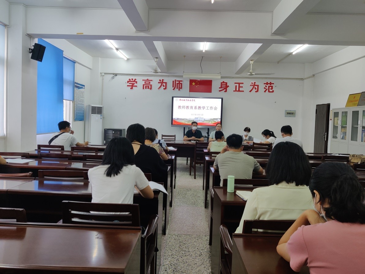 10月13日下午,教师教育系在系会议室召开高水平小学教育专业群项目建设推进会,会议由系主任杨丽英主持,系党总支书记蔡文艺、系副书记仲山民、系副主任白碧慧及系部其他行政人员、各专业带头人(负责人)、各教研室主任、实训室主任、骨干教师参加了会议。