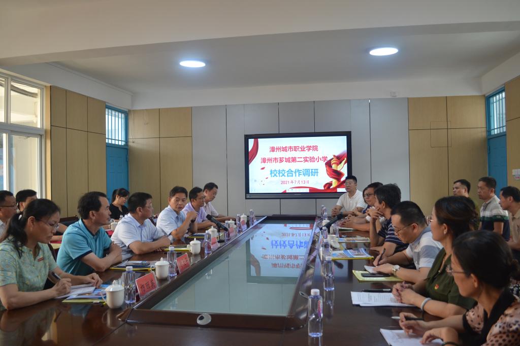 2021年7月13日,漳州城市职业学院党委书记洪亚勇、院长刘惠河带队深入学院教育实践基地校漳州市芗城第二实验小学走访调研。芗城区政府党组成员、区教育局党组书记詹立群和芗城区教育局副局长林辉协同调研。