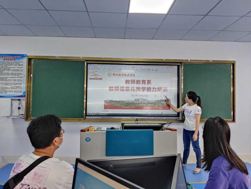 此次培训会由我系小学科学教育专业带头人冯巧玲副教授主讲。她从“一体机”正确操作规范、有效使用按键、多窗口的切换、软件选择应用、屏幕书写插入以及操作过程中常见的问题和解决办法等方面,给大家深入浅出地进行了讲解、演示。培训中,老师们认真聆听,做了详细的笔记,并积极互动操作,表现出了极大的学习热情。