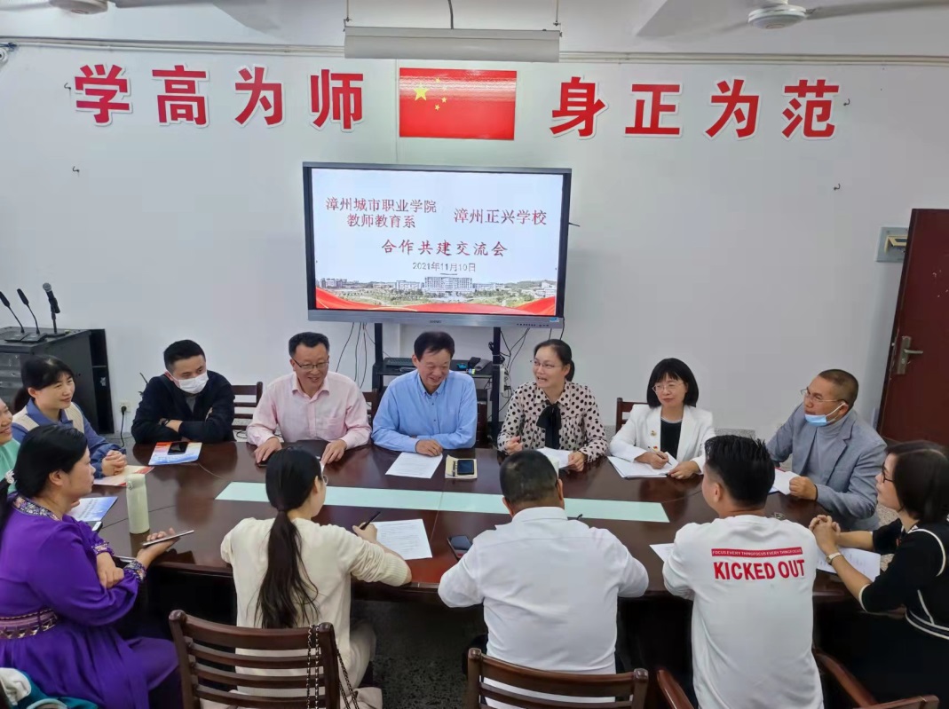 11月10日下午,漳州城市职业学院教师教育系与漳州正兴学校在教师教育系会议室举行合作共建交流会。交流会由系主任杨丽英主持,教师教育系党总支书记蔡文艺、副书记仲山民、副主任白碧慧,漳州正兴学校小学部校长陈伟军、艺体中心主任卢祥川、发展研究中心副主任詹惠珊,教师教育系心理健康教育专业带头人苏娟娟、美术教育专业负责人方卫国及相关老师出席了会议。
