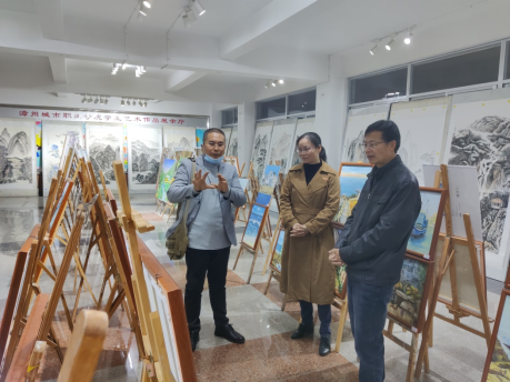 12月29日傍晚、30日下午,刘惠河院长、林良海副院长、郑文平副院长等先后来到现场参观学生作品,我系党总支书记蔡文艺、系主任杨丽英、副书记仲山民、副主任白碧慧、美术教育专业负责人方卫国等陪同。