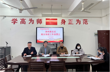 1月8日下午,教师教育系在系会议室召开期末寒假工作部署会,系党总支书记蔡文艺、系主任杨丽英、副书记仲山民、副主任白碧慧及全体教职工参加了会议。