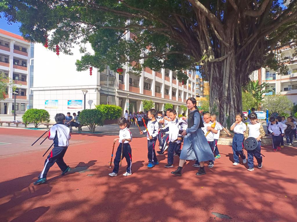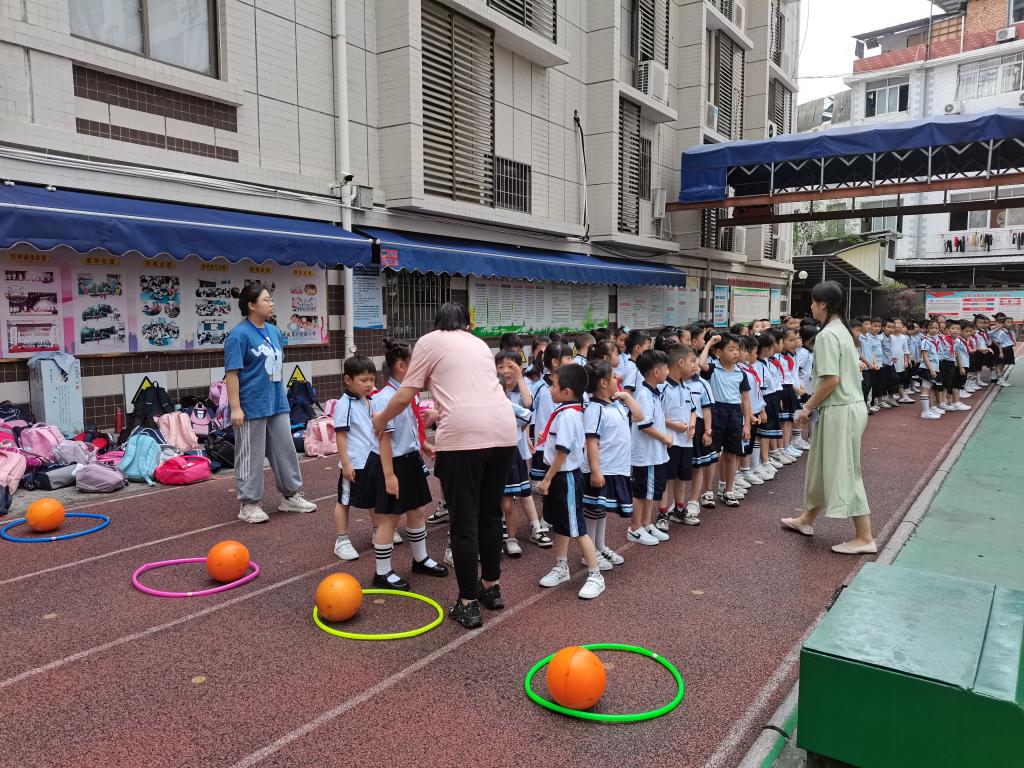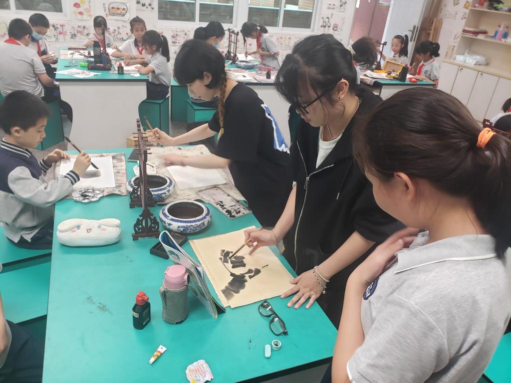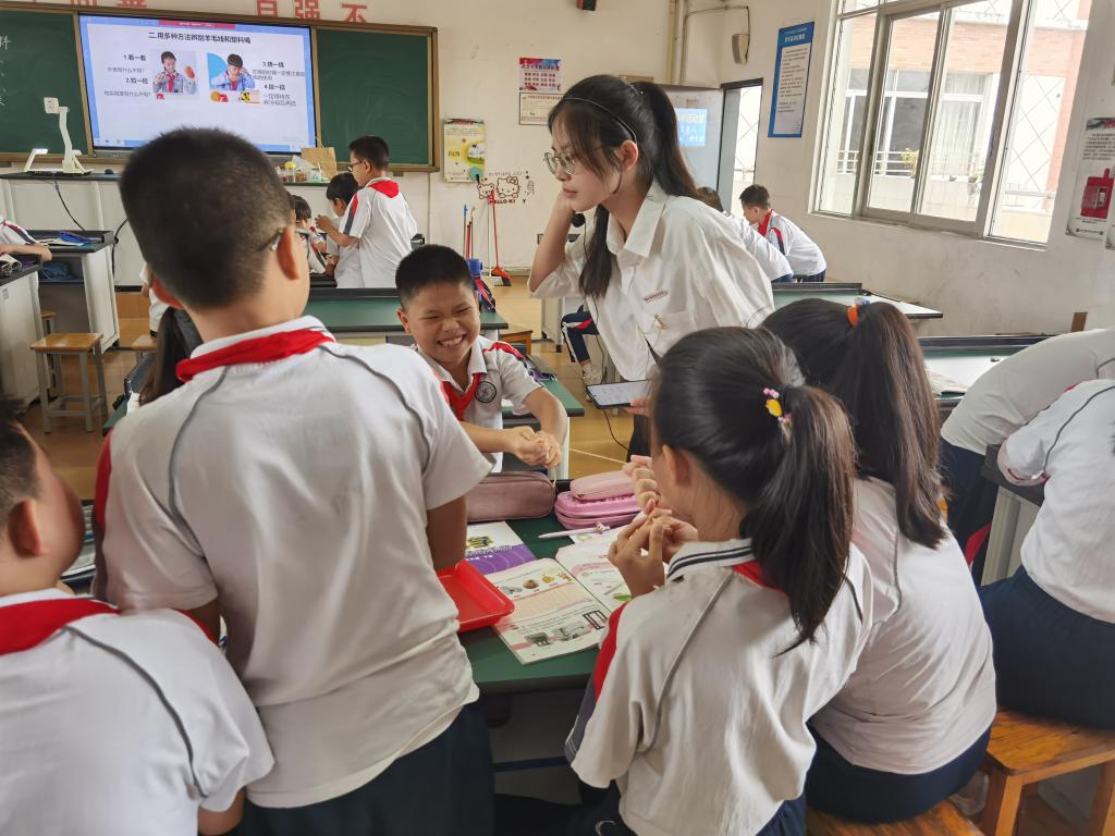实习生带小学生进行课外活动