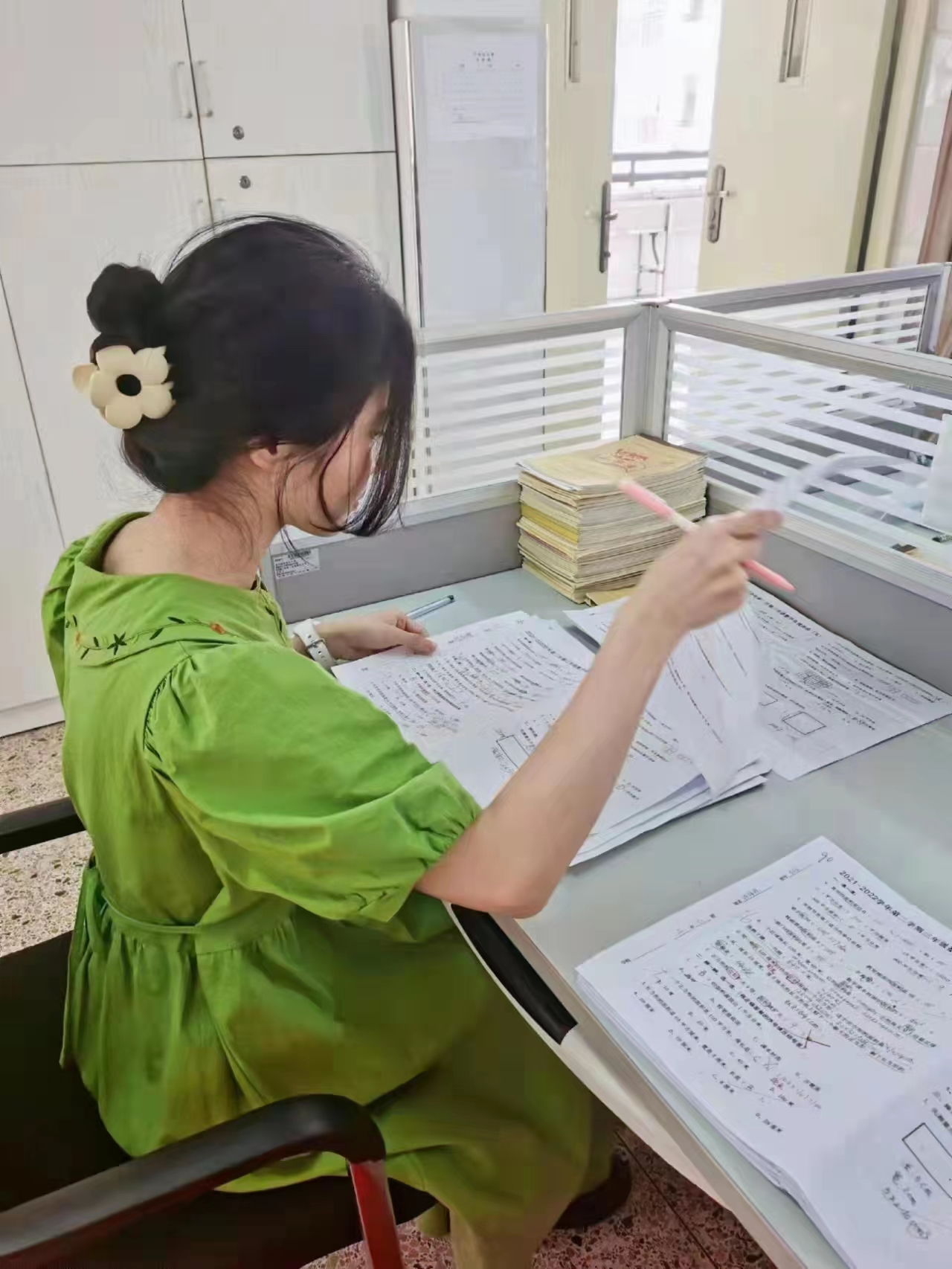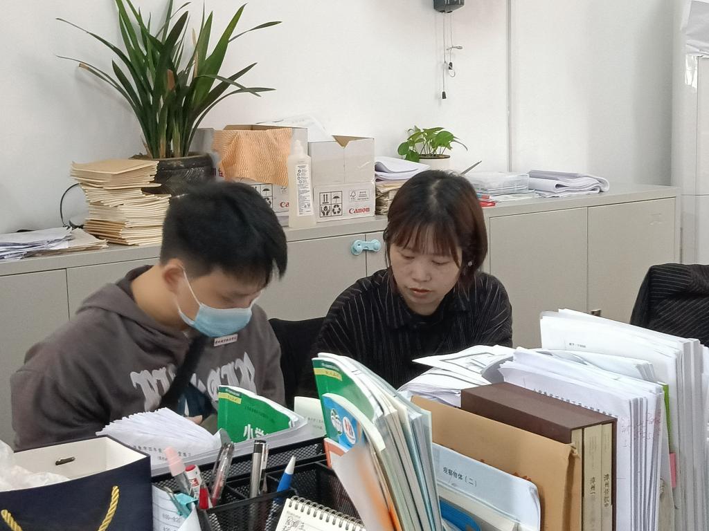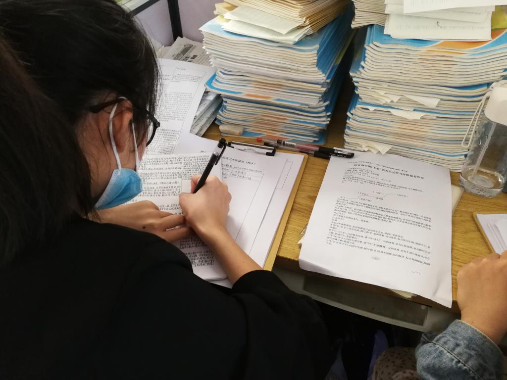 实习生在批改作业