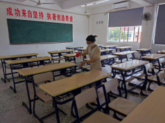 消杀人员对教室进行消杀