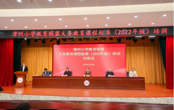 3月26日,漳州小学教育联盟义务教育课程标准(2022年版)培训开班式在漳州城市职业学院丹霞厅举行。学院副院长郑文平莅临现场致辞,漳州市教育局初幼教科科长柯木典、教务处处长林三睦、教师教育系党总支书记黄国英、发展规划与对外合作处副处长沈周义、教师教育系全体教师、学生代表以及来自漳州市各县区52所小学的教师们参加了开班仪式。开班仪式由教师教育系主任杨丽英主持。