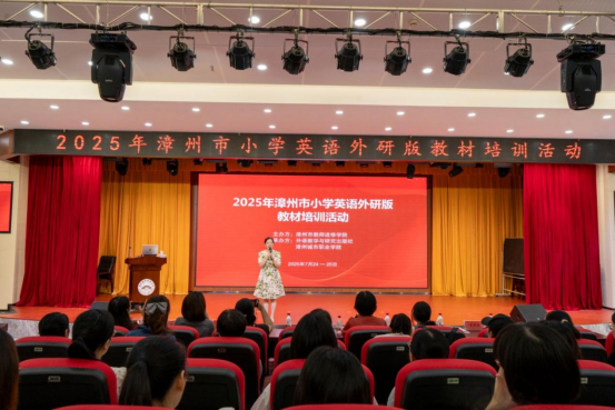 为帮助漳州市小学英语学科教师更好地理解新课标、用好新教材,2025年7月24日至25日,由漳州市教师进修学院主办、漳州城市职业学院教师教育学院及漳州市小学教育联盟联合承办的“2025年漳州市小学英语外研版教材培训活动”圆满举行。活动采取线上线下相结合的形式,吸引了全市各县(区)教研员、骨干教师代表300余人现场参与,漳州市小学教育联盟其他英语教师及宁夏海原县教师代表通过线上平台同步学习。