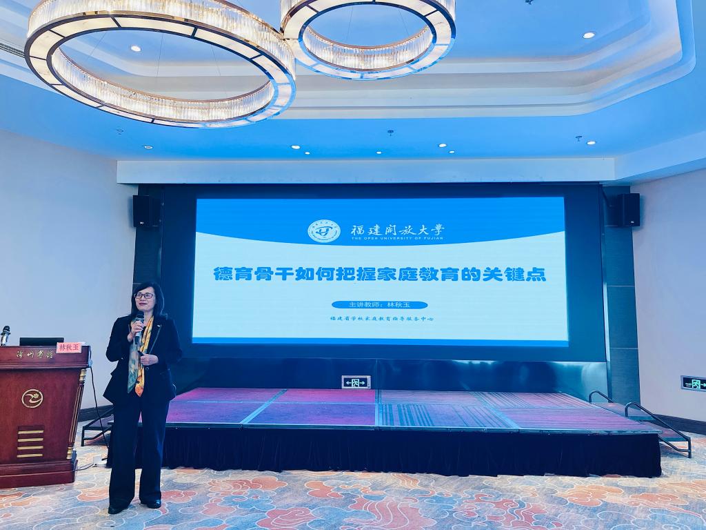 培训课程聚焦实务,特邀两位专家进行深度授课。福建开放大学黄碧珠博士以《“教联体”建设:内涵意蕴与协同育人实践路径》为题,系统解读了相关政策脉络、核心定义及“联责任、联资源、联空间”的实践路径,并结合案例阐述了“教联体”从“教育孤岛”向生态融合的发展阶段及建设目标。福建省学校家庭教育指导服务中心林秋玉科长作了《德育骨干如何把握家庭教育指导的关键点》专题分享,明确了德育骨干在协同育人中的多重角色,系统梳理了家庭教育的核心内容、分年龄段指导重点及实践方法,并强调了工作的法律边界与风险防控。