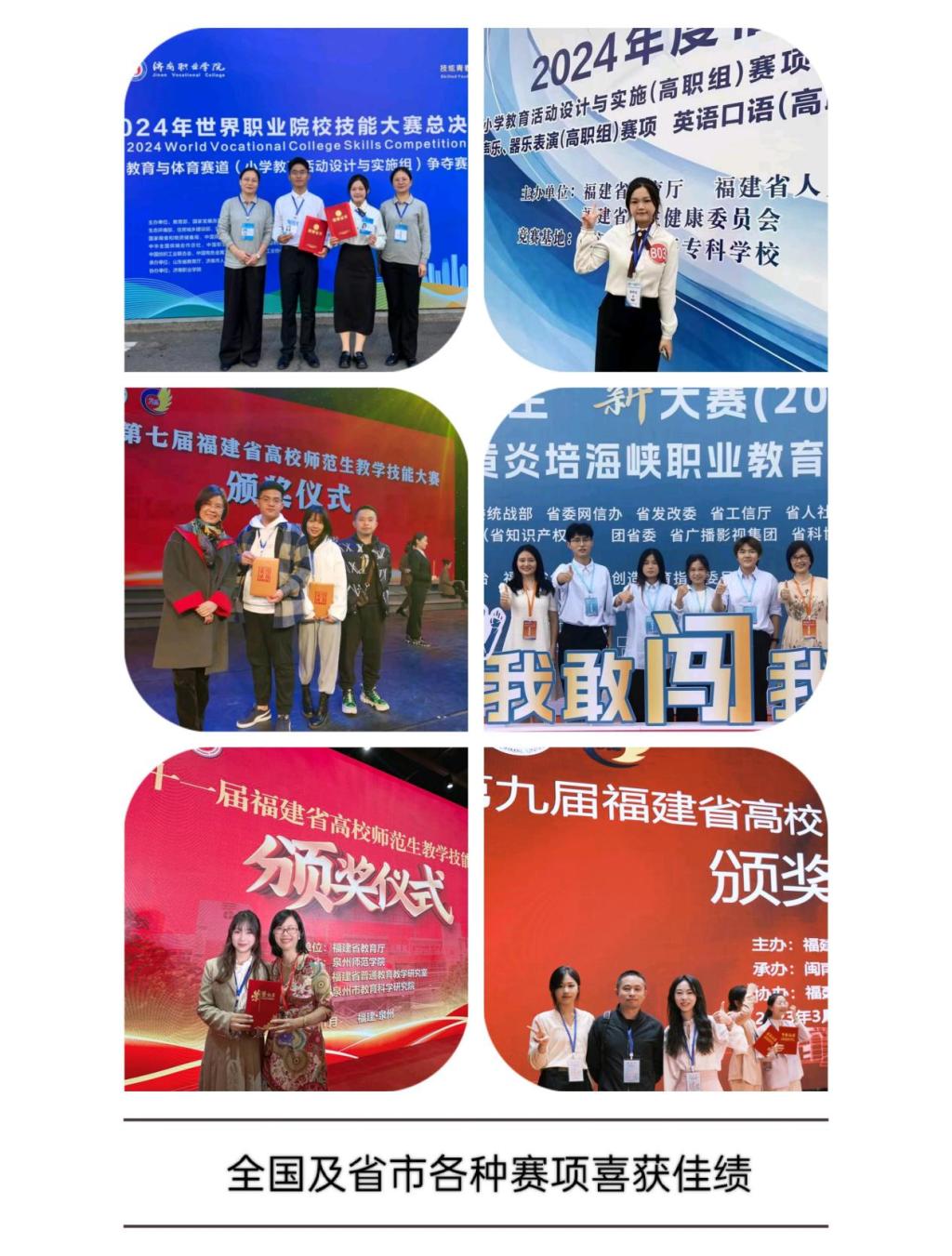 拥有专兼结合、结构合理、素质优良、业务过硬的省级优秀教学团队,也是省级教师教学创新团队,福建省高校双带头人教师党支部书记“强国行”专项行动团队,成员有省级专业带头人、省级优秀教师、百姓学习之星、漳州市优秀人才、福建省名师、省市学科带头人、省师范生教学技能大赛优秀指导教师、全国职业院校技能大赛小学教育活动设计与实施赛项裁判。她始终注重内涵建设,积极开展教育教学改革,不断提升人才培养质量和社会服务水平,在福建省职业教育人才培养模式的改革上作出表率,获得了社会好评。近几年,完成1个国家级项目、13个省级重点建设项目、20多个省、市级课题。她注重课程建设与开发,有省级专业资源库1个,省级精品课程3门,省级精品在线开放课程1门,省级精品在线课程3门,省级课程思政示范项目1项,取得省级教学成果二等奖2个,市级特等奖1个,2024年获福建省职业教育改革发展典型案例,福建省“党员好故事、书记好党课、支部好案例”评选。漳州市优质小学都是她的校外实践基地,她还建有省级实训基地,配有五个技能训练中心。
