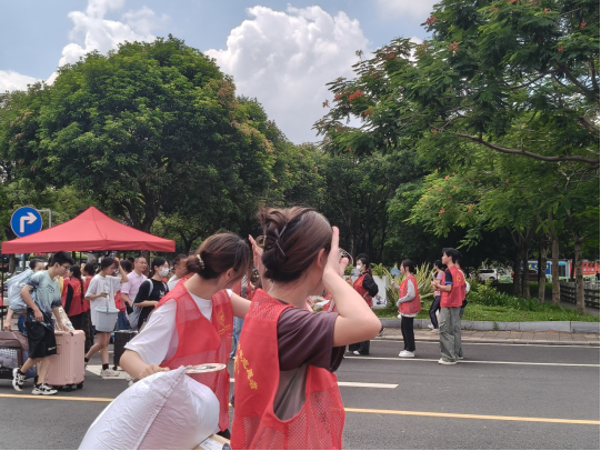 从校门到报到处,再到寝室楼,一群“红衣卫士”成了新生们最可靠的“活导航”。“同学,跟我走!”“行李交给我!”“阿姨您休息,我们来!”……一声声问候、一次次伸手,让初来乍到的新生和家长瞬间卸下忐忑,感受到“家”的温暖。