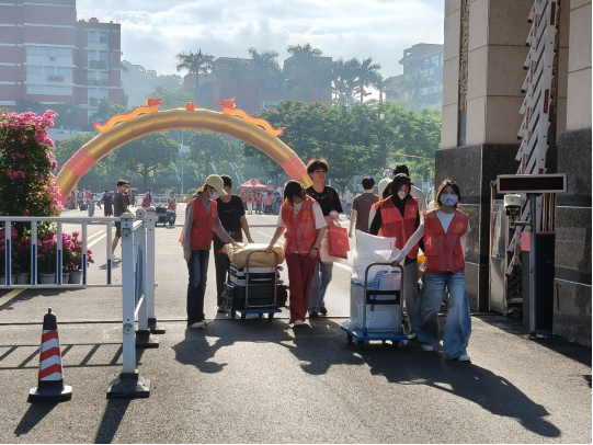 在这支队伍中,志愿者们主动担当,积极作为,凭借对校园环境的熟悉与自身的过往经验,为学弟学妹提供了高效、精准的引导和帮助。他们不仅是“引导员”,熟练地将新生带至各办理点;更是“搬运工”,不辞辛劳地协助搬运行李;亦是“答疑人”,他们耐心细致地解答关于学业、生活的各类咨询。他们用真诚的微笑消除了新生的陌生与忐忑。