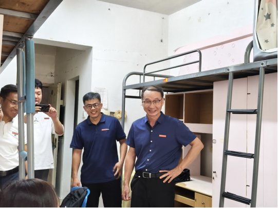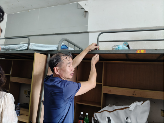 迎新当天,学院党总支书记黄国英与副书记游伟斌一行亲临迎新现场,全面巡查了各项工作的开展情况。他们驻足与志愿者及2025级新生热情交谈,对志愿者们周到细致的服务给予高度肯定,并向刚踏入校园的新同学们表达了诚挚的欢迎和问候。 随后,黄国英书记带领辅导员队伍走访新生宿舍。每到一间寝室,他们都与新生亲切互动,关心大家的入住体验,并仔细查看环境卫生与安全设施,确保新生拥有一个整洁、安全、舒适的居住环境。黄书记还勉励同学们尽快适应新环境、专注学业,以积极昂扬的姿态迎接精彩的大学生活。
