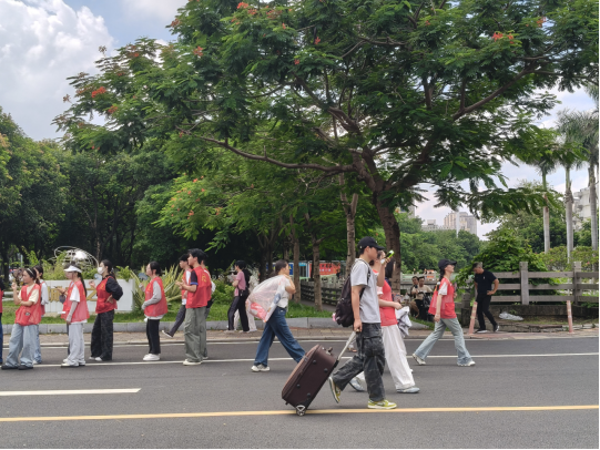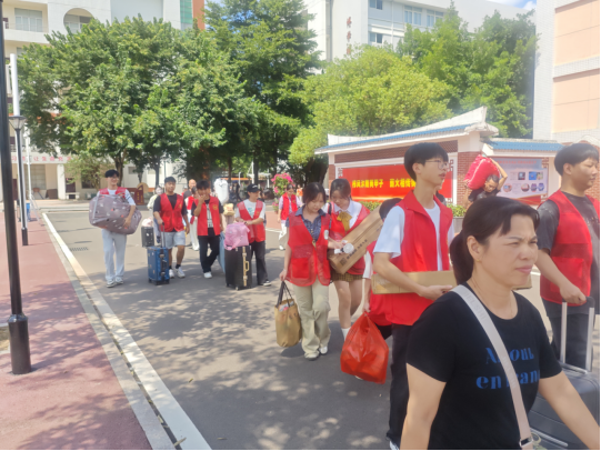 晨曦微暖,阳光正好!一群热情的志愿者们早已手持引导牌,笑容满面地等候在校园的每个角落——那一声声“同学你好,需要帮忙吗?”瞬间驱散了初来乍到的陌生与忐忑。 瞧,“红马甲”们轻快地穿梭在人群之中,开启着他们的“迎新接力”:从贴心的路线指引,到利落地帮忙搬运行李,再到一路说笑陪伴走进宿舍……他们用行动默默诉说:这儿的每一天,都会像回家一样温暖。