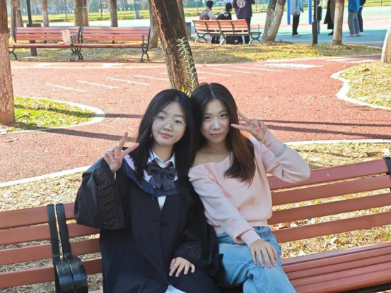 这张照片定格了2025年12月27日学姐们回校拍毕业照的瞬间。作为大我一届的23级学姐兼班助,我们的故事始于一年半前开学前那句“班助你在不?”。从最初的指导到后来的频繁交流,我们逐渐熟络,“来读书”成了我们成为学习搭子的开始。她总是督促我学习,分享经验,给予我莫大帮助。这一年,她不仅是班助,更是我学习的榜样,激励我不断前行。