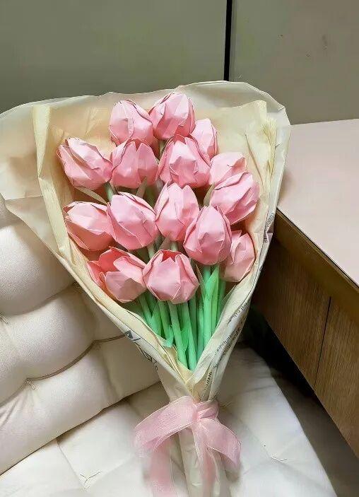 这束手工郁金香,是我为妈妈准备的心意之礼。每一片花瓣都由我亲手折叠,手工花能把这份温暖长久留存,郁金香的花语是“永恒的爱”,就像妈妈对我的爱,从不会褪色。我想对她说:“妈妈,谢谢你用无私的爱撑起了我的小世界。从前你为我遮风挡雨,往后换我来守护你。愿这束永不凋零的花,能替我陪伴你,让你永远被温柔与美好包围。”