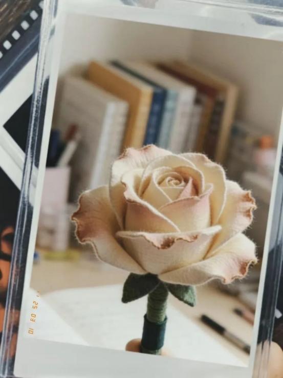 灵感来源于妈妈最爱的香槟玫瑰,我用皱纹纸慢慢晕染出渐变色彩,复刻花瓣自然舒展的弧度,想让永不凋零的花朵替我诉说牵挂。想对她说:“妈妈,谢谢你做我平淡岁月里最耀眼的星辰,愿你永远被爱意包围,永远自在舒展。”