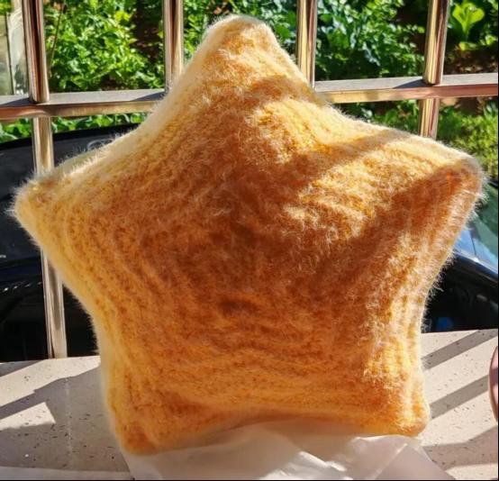 设计灵感:我妈平时上班特别累,经常回到家腰酸背痛的。所以我决定钩个星星抱枕,因为她在我心里就像星星一样,给我指明方向。同时也是想让她有个软和的东西靠着歇一会儿。抱枕钩了好几个星期,因为是第一次钩织,每一针都要犹豫好久。